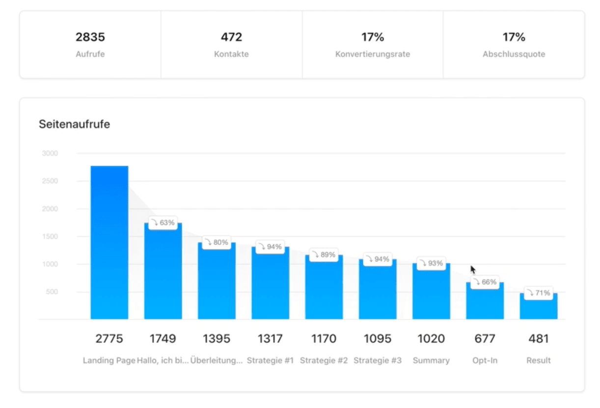 Sieh genau, wo deine Interessenten im Funnel abspringen und wie viele sich davon bewerben. Zeige Besuchern die passende Ergebnisseite an, je nachdem, was geklickt wurde und erhalte wertvolle Einblicke deiner Zielgruppe.