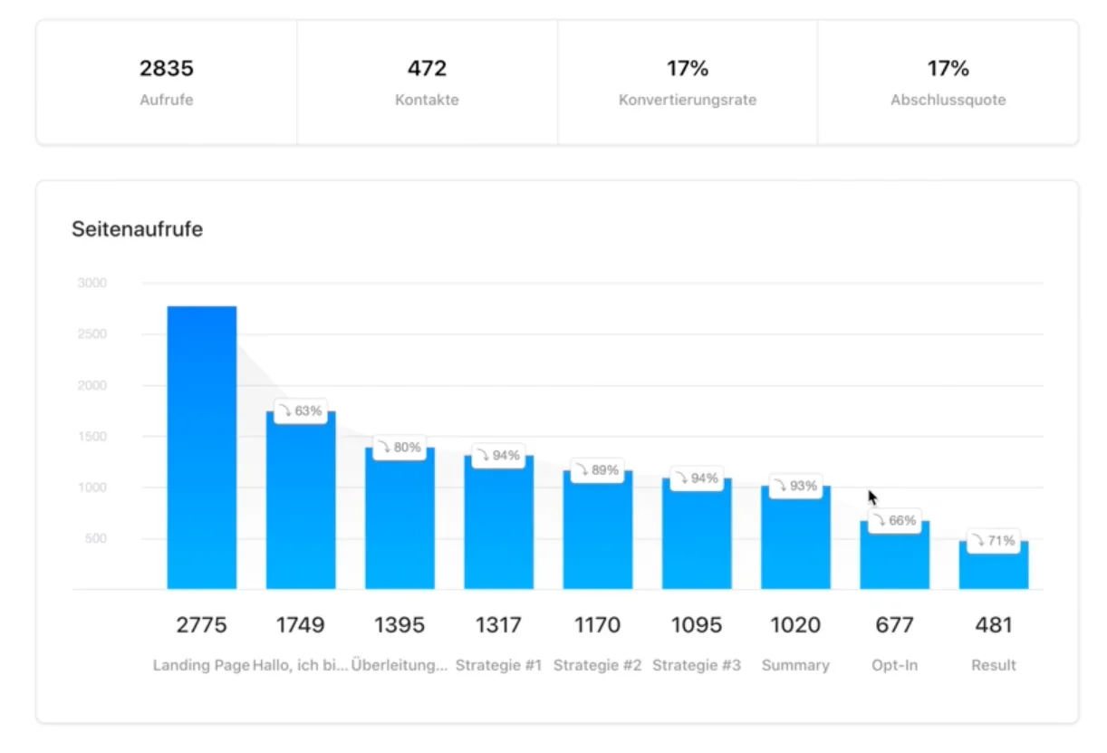 Sieh genau, wo deine Interessenten im Funnel abspringen und wie viele sich davon bewerben. Zeige Besuchern die passende Ergebnisseite an, je nachdem, was geklickt wurde und erhalte wertvolle Einblicke deiner Zielgruppe.